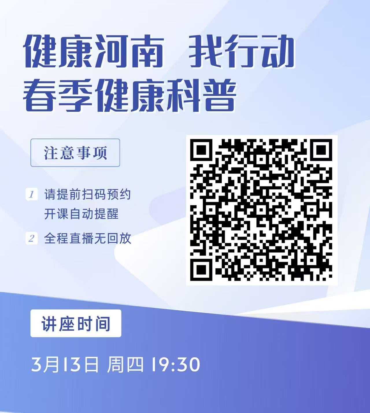 近期我省传染病高发,为深入贯彻落实《健康河南行动(2023-2025年)》有关要求,特邀省级健康科普专家定于3月13日开展一期安全健康线上科普。望各分工会高度重视,精心安排部署,确保活动取得实效。现有关事项通知如下: